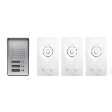 Σύστημα θυροτηλεφώνου 2 καλωδίων με θυροτηλέφωνο Armonia ανοιχτής ακρόασης με θέση ονόματος και δυνατότητα επέκτασης έως και 4 μπουτονιέρες παράλληλα.