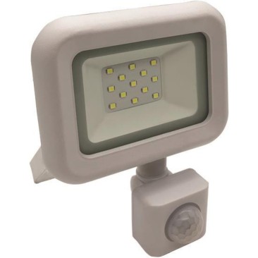 Στεγανός προβολέας LED SMD Eurolamp Plus 10W με βάση 360 μοιρών, σε λευκό χρώμα, με φωτισμό ημέρας και περιστρεφόμενο ανιχνευτή κίνησης. Διαθέτει δυνατότητα ρύθμισης ευαισθησίας στο φως της ημέρας.