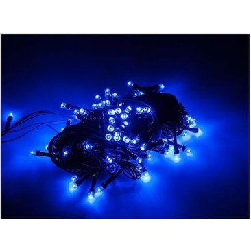 Σειρά με 240 Χριστουγεννιάτικα λαμπάκια led της Eurolamp μήκους 11.95m, πάχους 3mm, 31V, μετασχηματιστή με μνήμη, 8 προγράμματα και προέκταση παροχής 300cm. Εκπέμπουν φως σε μπλε χρώμα και έχουν πράσινο καλώδιο. Διαθέτουν βαθμό προστασίας IP44, που δηλώνει ότι δεν μπορούν να εισχωρήσουν στερεά αντικείμενα άνω του ενός χιλιοστού αλλά ούτε και νερό με μεγάλη ένταση.