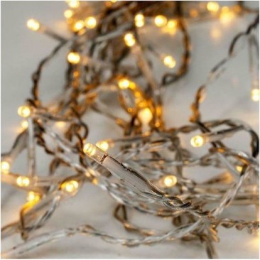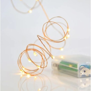 20 λαμπάκια led σε σειρά μήκους 1.9m και προέκταση παροχής 10cm. Έχουν χάλκινο καλώδιο και εκπέμπουν θερμό λευκό φως, του οποίου οι τόνοι είναι πιο κίτρινοι σε σχέση με το φυσικό φως. Διαθέτουν βαθμό προστασίας IP20, που δεν επιτρέπει την άμεση επαφή των δαχτύλων μας με τα φωτιστικά στοιχεία. Λειτουργούν με μπαταρίες 3 x ΑΑ.