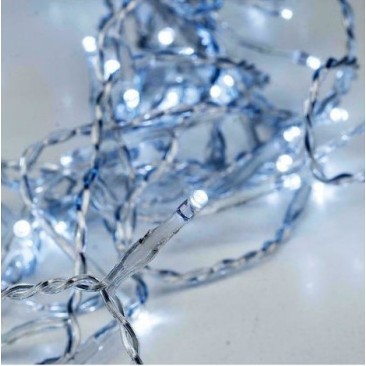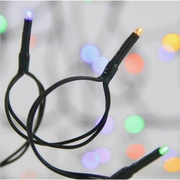 Σειρά με 100 Χριστουγεννιάτικα λαμπάκια led της Eurolamp μήκους 4.95m, πάχους 3mm, 31V, μετασχηματιστή με μνήμη, 8 προγράμματα και προέκταση παροχής 300cm. Εκπέμπουν φως σε διάφορα χρώματα και έχουν πράσινο καλώδιο. Διαθέτουν βαθμό προστασίας IP44, που δηλώνει ότι δεν μπορούν να εισχωρήσουν στερεά αντικείμενα άνω του ενός χιλιοστού αλλά ούτε και νερό με μεγάλη ένταση.