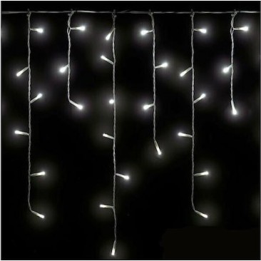 144 LED ψυχρά λευκά, 3 μέτρα x 60 εκατοστά τύπου "βροχή" με μετασχηματιστή, διαφανές καλώδιο και προέκταση παροχής 300 εκατοστά. Έχει υψηλό βαθμό στεγανότητας (IP44) ώστε να μπορεί να χρησιμοποιηθεί και σε εξωτερικό χώρο.