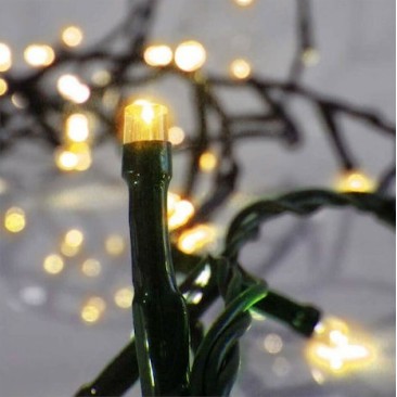 Σειρά με 240 Χριστουγεννιάτικα λαμπάκια led της Eurolamp μήκους 11.95m, πάχους 3mm, 31V, μετασχηματιστή με μνήμη, 8 προγράμματα και προέκταση παροχής 300cm. Εκπέμπουν φως σε διάφορα χρώματα και έχουν πράσινο καλώδιο. Διαθέτουν βαθμό προστασίας IP44, που δηλώνει ότι δεν μπορούν να εισχωρήσουν στερεά αντικείμενα άνω του ενός χιλιοστού αλλά ούτε και νερό με μεγάλη ένταση.
