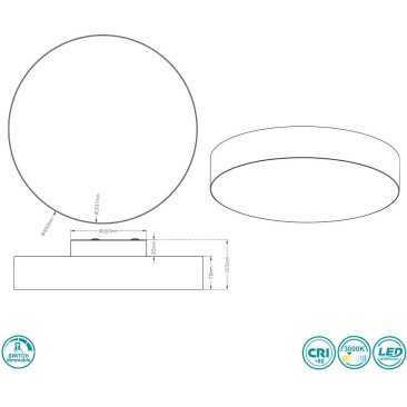LED panel εξωτερικής τοποθέτησης της Trio Lighting, στρογγυλό, με ισχύ 22W. Εκπέμπει θερμό λευκό φως, το οποίο αποδίδεται στην κλίμακα Kelvin με τιμές από 2400Κ έως 3800Κ. Οι τόνοι του θερμού λευκού είναι πιο κίτρινοι σε σχέση με το φυσικό φως.