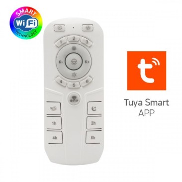 Ανεμιστήρας οροφής με φωτιστικό LED RGB, ντιμαριζόμενος με τηλεχειριστήριο, bluetooth και Wi-Fi. Διαθέτει την δυνατότητα ρύθμισης χρώματος φωτισμού και ταχύτητας κίνησης ανεμιστήρα 5 επιπέδων μεταξύ άλλων.