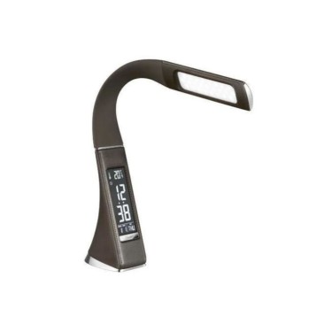 Φωτιστικό γραφείου με ενσωματωμένο LED και ψηφιακή οθόνη με ενδείξεις θερμοκρασίας, ημερομηνίας και ώρας. Με ευλύγιστο κορμό για εύκολη προσαρμογή του φωτός στην επιθυμητή θέση. Διαθέτει καλώδιο τροφοδοσίας USB και αντάπτορα ρεύματος.