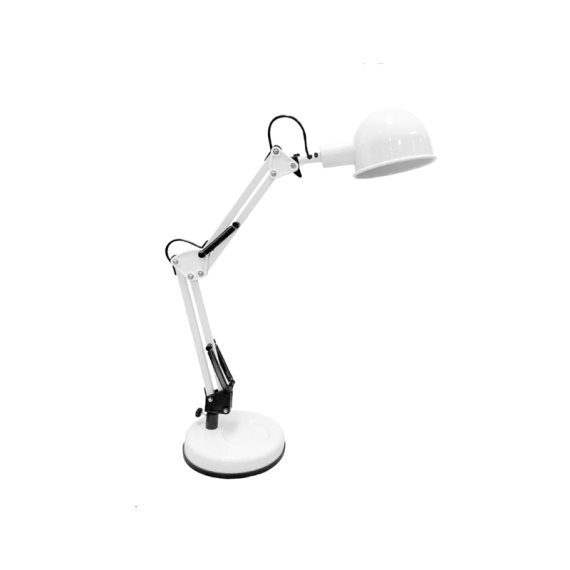 Μεταλλικό φωτιστικό γραφείου με σπαστό βραχίονα και καλώδιο ρεύματος με διακόπτη on/off. Δέχεται λάμπα τύπου Ε14.