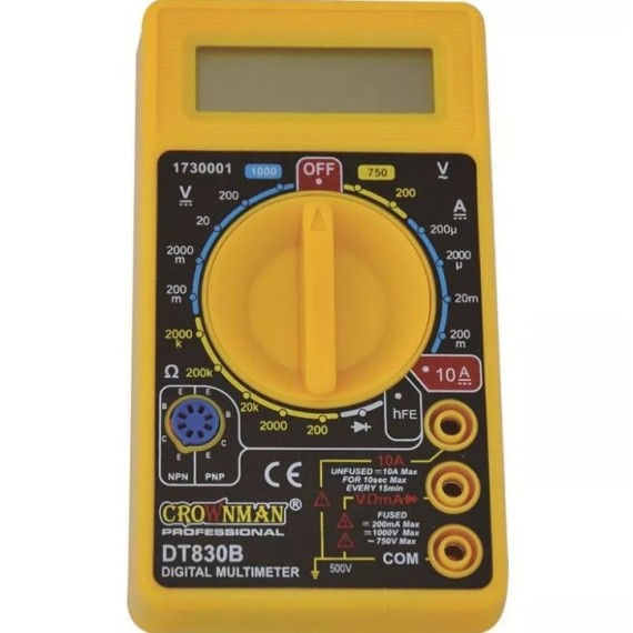 Ψηφιακό πολύμετρο της εταιρίας Crownman με οθόνη LCD για την ένδειξη των μετρήσεων καθώς και προειδοποιητική ένδειξη χαμηλής μπαταρίας. Η συσκευασία περιλαμβάνει καλώδια μέτρησης, βιβλίο οδηγιών και μπαταρία 9V.
