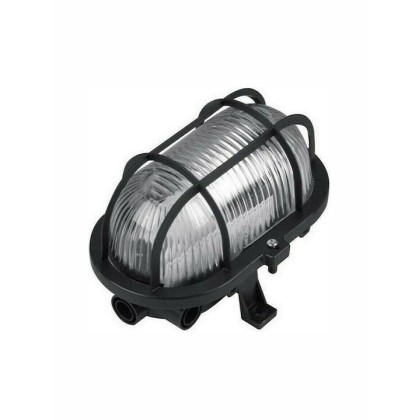Φωτιστικό οβάλ εξωτερικό, πλαστικό με γυάλινο κάλυμμα (χελώνα) σε μαύρο χρώμα. Δέχεται λάμπες τύπου Ε27.